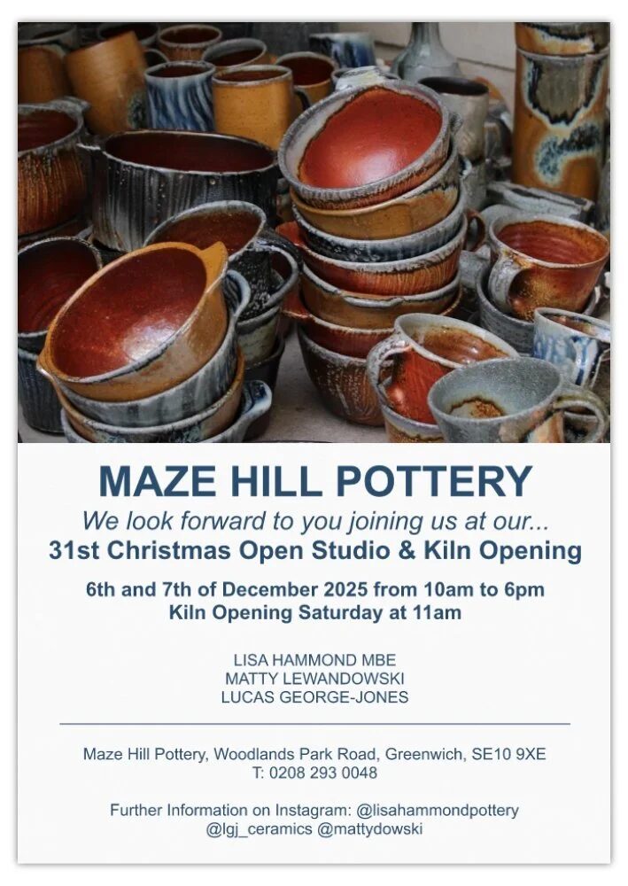 Lisa Hammond MBE invites you to the annual Christmas Open Studios and Kiln Opening. There will be their usual mulled wine, mince pies and of course plenty of pots!